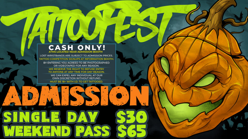 TICKETS TICKETS AVAILABLE AT THE DOOR. CASH ONLY. ATMS ON SITE. See you at the Grand Rapids Tattoo Festival!